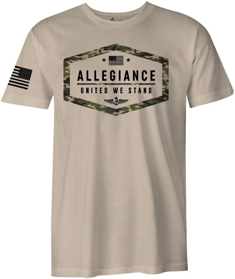 Looking for a stylish and patriotic way to show your allegiance? Look no further than the Camo Republic Premium Tee from Allegiance Clothing. This tee features our Camo Republic logo screen printed large on the front, with a small classic logo on the back and an assaulting American Flag on the sleeve. Made from a soft and comfortable 60% combed ring-spun cotton and 40% polyester blend, this tee is perfect for everyday wear. Add this shirt to your collection today. Made in the USA!
