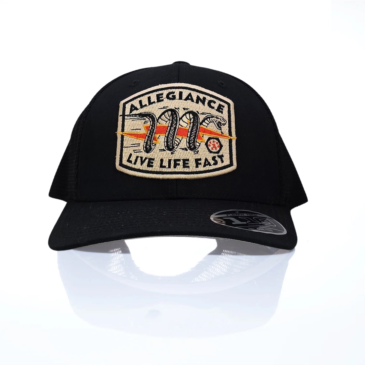 Meet the Snake Bite 110 Trucker, a bold hat built for speed, grit, and everyday style. This 110 Flexfit Trucker Snapback combines structure, stretch, and breathability for the perfect fit. Even better, it features our vintage “Live Life Fast” Snake Bite patch, making it a standout piece for anyone who loves fast lanes and louder-than-life design.