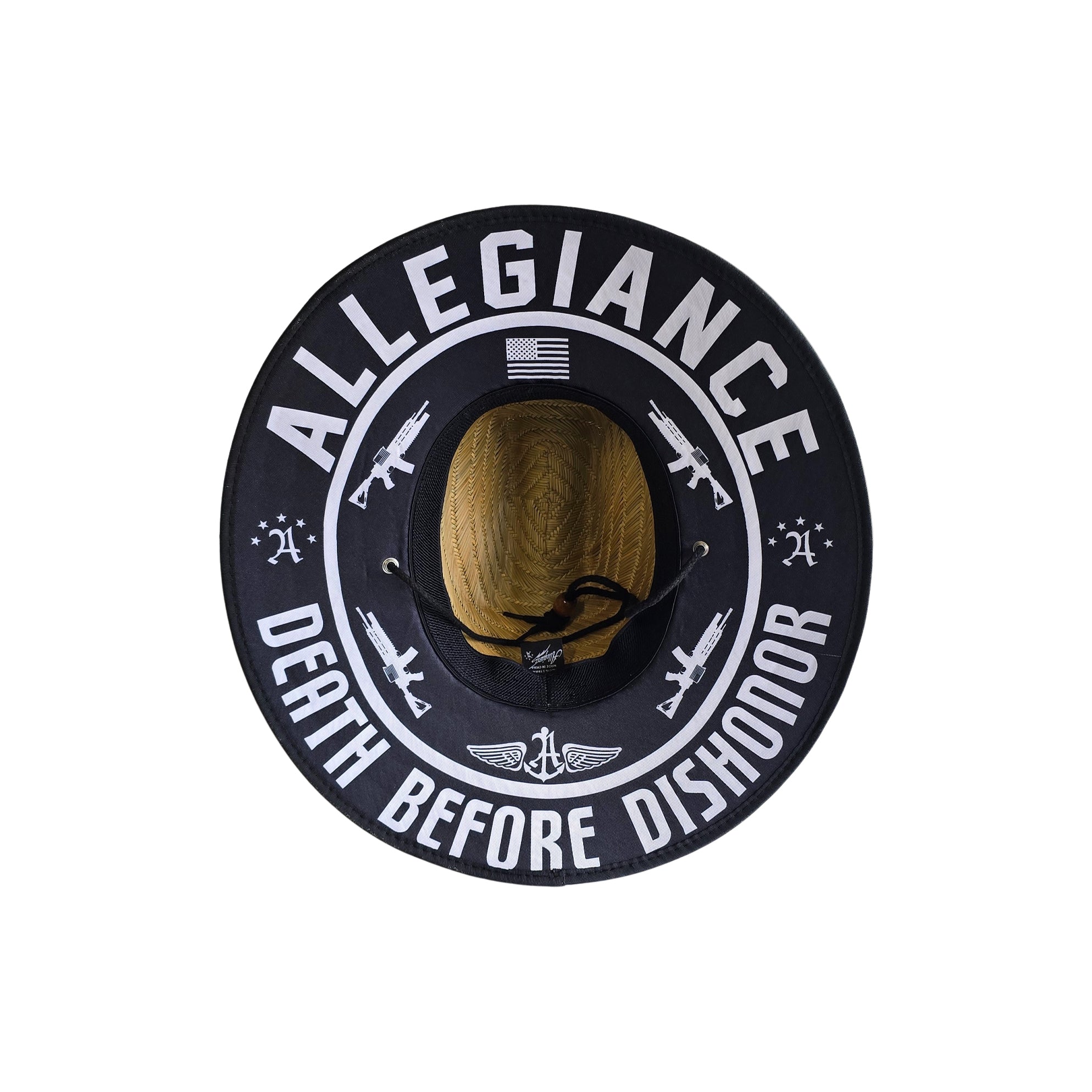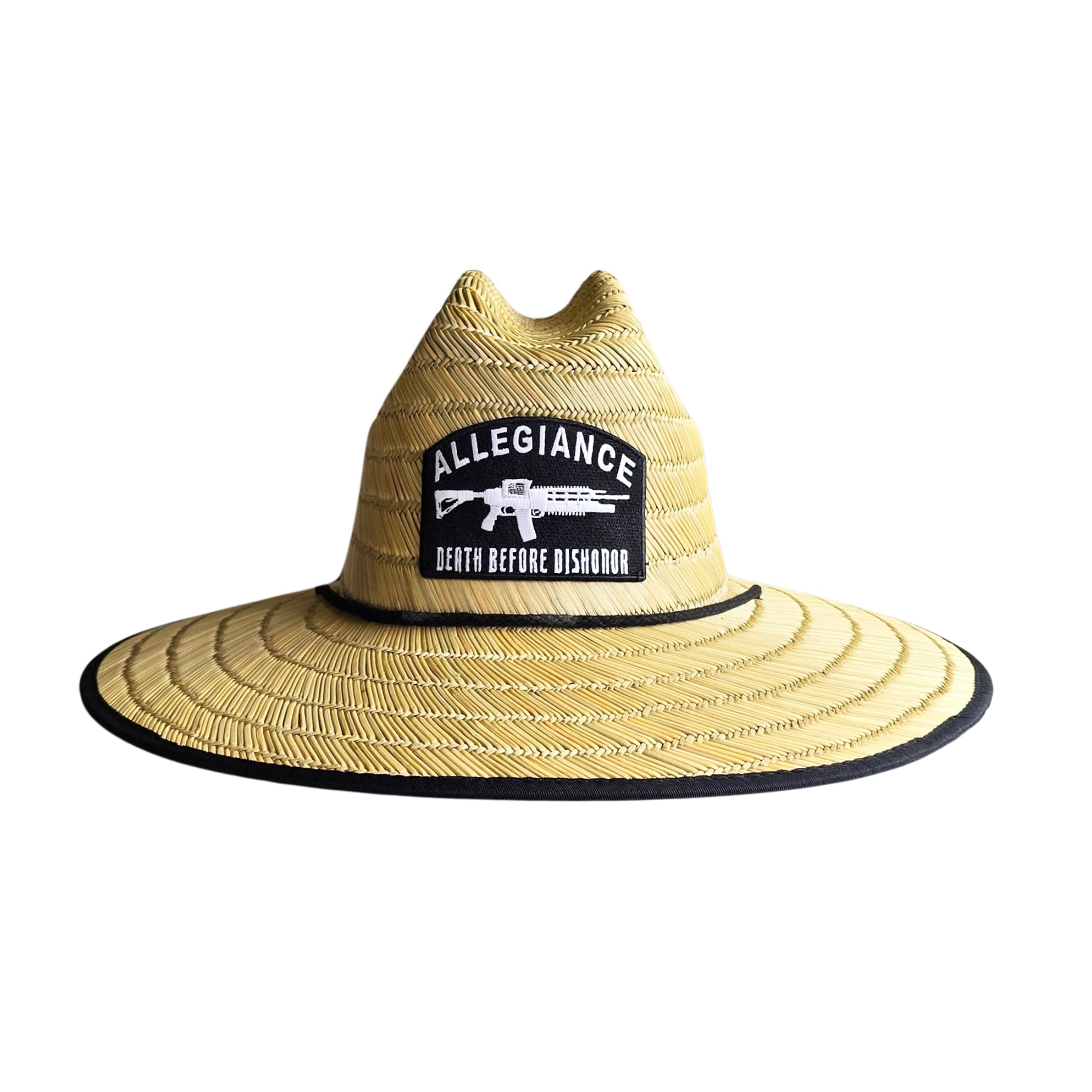 Looking for a stylish and patriotic way to show your support for the 2nd amendment? Look no further than the Allegiance Dishonor Straw Hat! This hat is constructed from 100% natural straw for a comfortable and durable fit. The perfect way to shield your eyes from the sun, it features our iconic Dishonor patch sewn on the front, making it the perfect way to show your American pride. Perfect for relaxing by the pool or a day at the track! Get yours today!